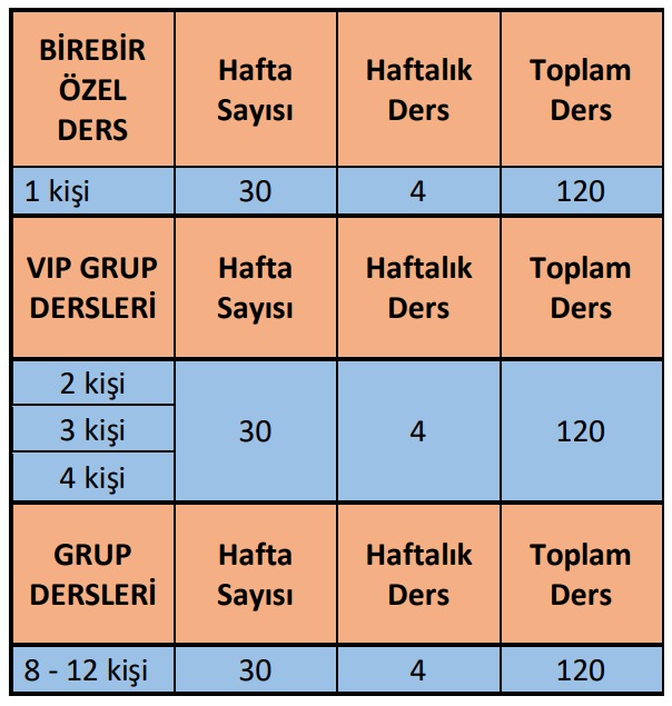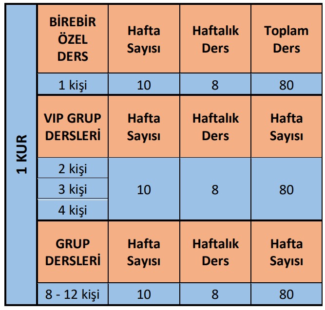 • Dersler haftada 2 gün, her gün 4’er ders olacak şekilde planlanır. Böylece bir kur 10 haftada tamamlanır.